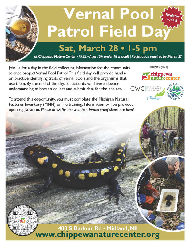 Discover more about the “coral reefs” of Michigan’s forests during this vernal pool exploration at Forestview Natural Area. Attendees will get to learn more about these ephemeral wetlands and the critters that rely on them, including macroinvertebrates, frogs and salamanders. Attendees should dress for hiking in wet and muddy trail conditions, and if available, should wear ankle or knee-high boots. This event is free and open to all ages.